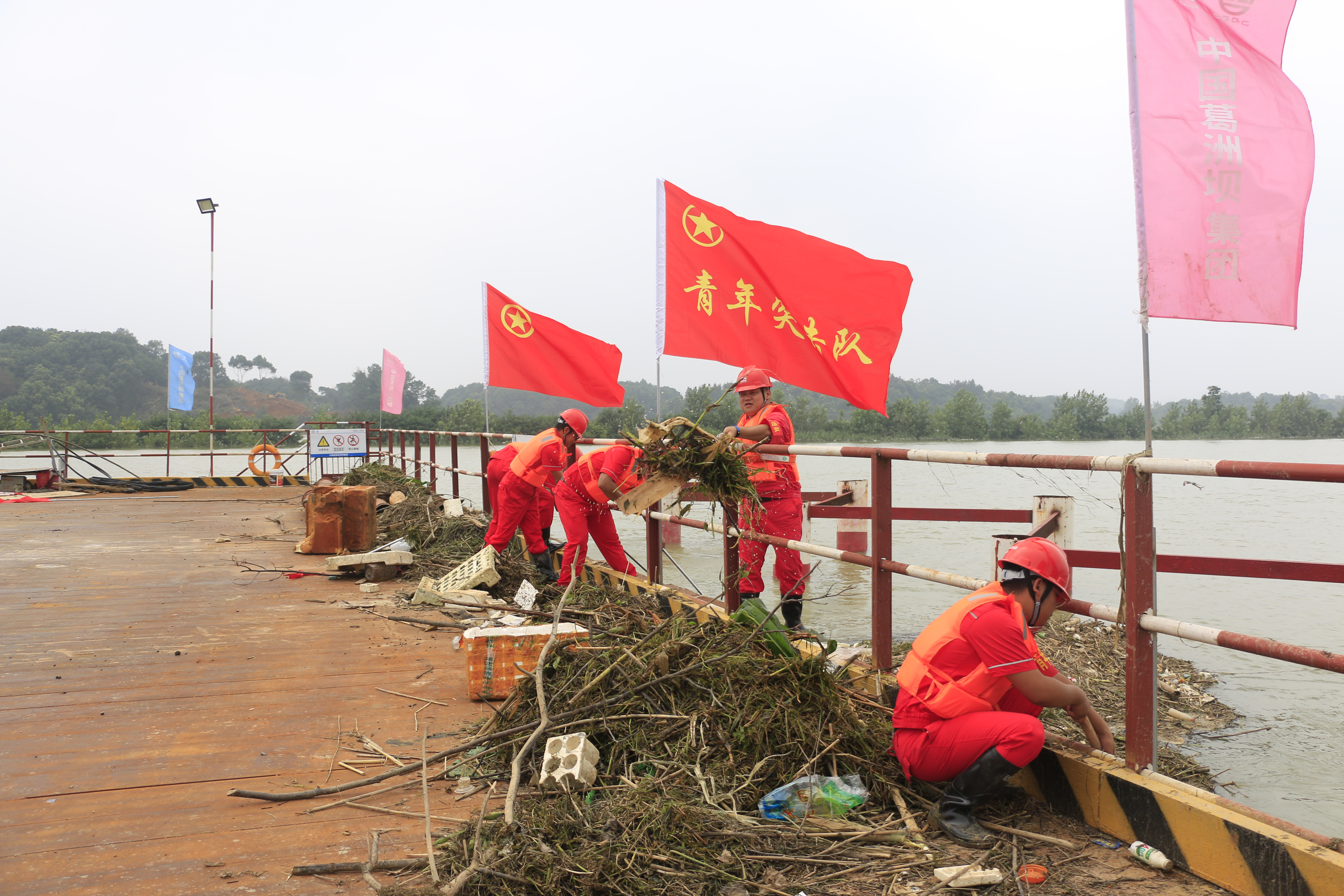 7月6日上午8時,富水河特大橋鋼棧橋施工現(xiàn)場水位上漲迅猛,水流湍急,施工安全受到不利影響。項目部立即啟動抗洪搶險應急預案,嚴格實行領(lǐng)導帶班和24小時值班制度,為抗洪搶險斗爭勝利贏得工作主動性。駱軍成穿上救生衣,拿起手電筒,開始夜間值班。