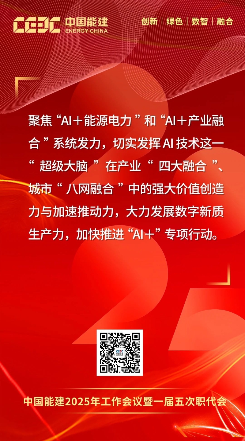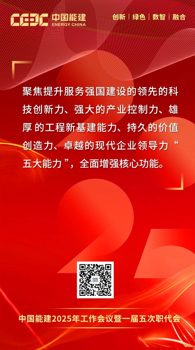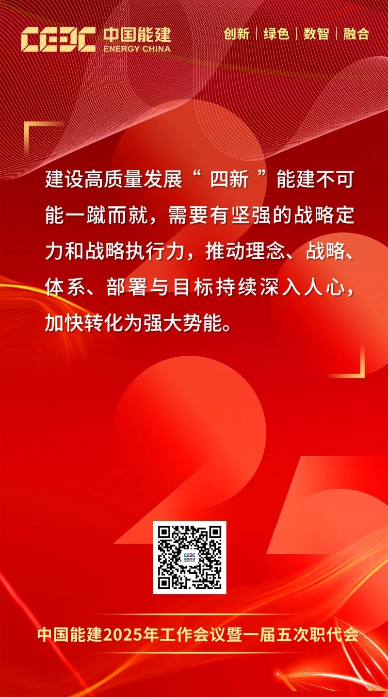 1月16日-17日,中國(guó)能建2025年工作會(huì)議暨一屆五次職代會(huì)在京召開。會(huì)上,中國(guó)能建黨委書記、董事長(zhǎng)宋海良發(fā)表題為《保持戰(zhàn)略定力 突出科技引領(lǐng) 強(qiáng)化價(jià)值創(chuàng)造 狠抓落地轉(zhuǎn)化 奮力譜寫高質(zhì)量發(fā)展“四新”能建嶄新篇章》的講話。